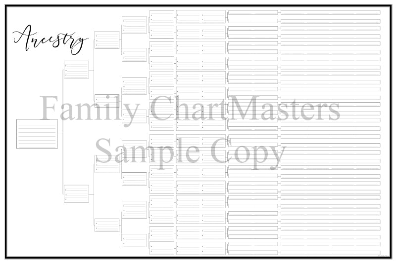 For a pre-filled chart, we will ask you to send us your GEDCOM file and will print your family tree data directly onto the chart.