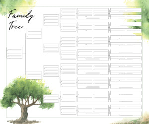 For a pre-filled chart, we will ask you to send us your GEDCOM file and will print your family tree data directly onto the chart.